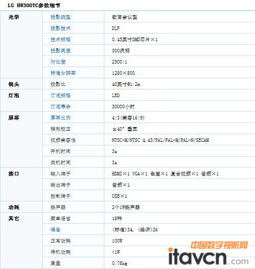 LG-HW300TC微型投影机参数