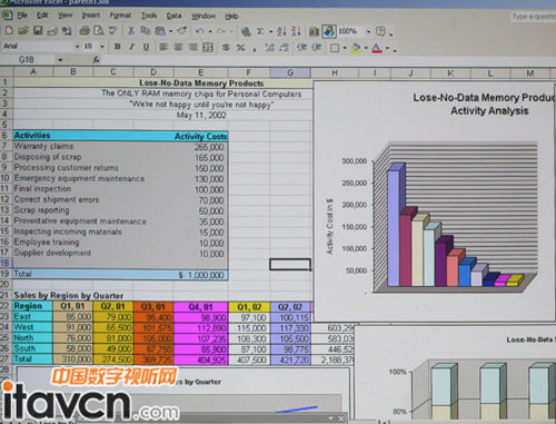 从图片可以看到,日立HCP-627X投影机在文档演示方面表现不俗,字符区分清楚,图表还原准确,颜色也很真实,由于各种因素,实际效果还要好于图片,有兴趣的可以亲自到卖场体验。