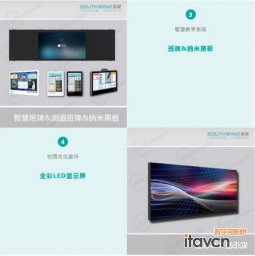 针对不同学校的应用场景,南翼科技也提供全方位的智慧校园解决方案,包括智慧教室班牌系统、校园门禁闸机系统、家校互动平台、校园无感识别定位系统、精品化录播系统、电子图书阅览系统、教学资源系统等系统解决方案;在智能化显示终端的选择上,针对不同场景可提供如学校门口的全彩LED大屏,楼宇公共区的拼接显示大屏及液晶宣传一体机,图书馆的智慧阅读机,智慧教室门口智慧班牌、智慧教室内教学一体机及精品化录播等针对性的解决方案。