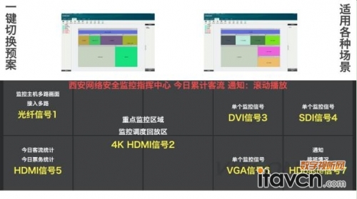 使用了混合拼接处理器,可不限制接口影响,各种接口都可自定义,还有很多很多功能及方案,对拼接处理器感兴趣的可以查看我们的视频拼接处理方案哦!