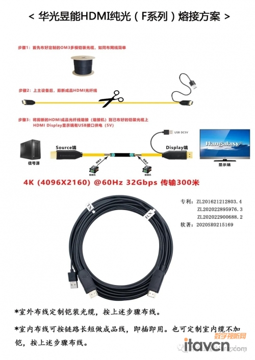 【数字视听网讯】华光昱能Hangalaxy品牌的HDMI光纤线自带光通讯气质,每一套不同接口的AOC有源光纤线都通过光通讯行业标准所特有的对环境、工艺、检测等苛刻手段精雕细琢。对光器件的检测、筛选和方案选择,以及对于一切可触摸的材质有严格要求,不求表面诱人颜值,但极致注重品质内涵,让市场对Hangalaxy品牌的有源光纤线有了全新定义。大型项目上链接不同品牌型号设备的兼容性极佳,追求100%兼容性是华光昱能光纤线的终极目标;在大批量铺设华光昱能品牌的有源光纤线对产品的一致性更让客户放心,不留雷点。项目交付后的高稳定性让工程师更无后顾之忧。