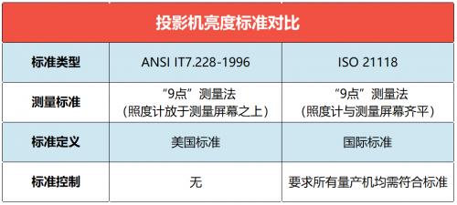 由于各投影厂商的亮度标准并不统一,所以仅能给出一个大致的参考,我们暂以ISO标准为例: