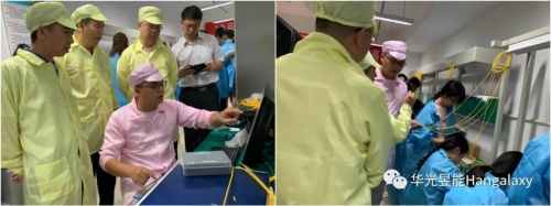 上图浅红工作服的培训导师是华光昱能工程师着浅黄工作服是莅临视察指导的各界领导