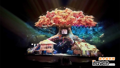 投影机安装在防风雨外壳中,俯瞰整个舞台区域,在多个栈道连接的表演场所投下生动影像,包括扶桑神树及光影变幻的丛林等场景。李中亮补充说:“这些场面代表古代诗歌中所描绘的自然与生命和谐共处,我们使用各种先进技术进行生动呈现,包括3D投影、照明、全息和水幕效果,打造出叹为观止的多感官体验,彰显九歌•山鬼景区的永恒之美。在此特别感谢投资方张家界禾田居生态农业开发有限公司、赵海导演团队对建业显示团队的信任与支持,祝愿景区人气满满、票房大卖。”