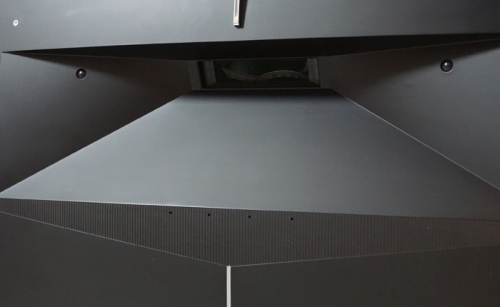机器整体采用了经典的黑色和银白色相搭配,黑色让产品尽显沉稳、大气,银白色的前脸配色赋予机器高端气息及科技感。中科极光真激光家庭影院X1A采用了大量的栅格化设计,包括机器的正面、双侧面都采用了大量的栅格孔,足以保证机器的散热需求。机器大部分接口都设置在机器背面,方便机柜布线。都知道激光电视的初期调试非常繁琐,为了外接移动存储设备的方便性,中科极光真激光家庭影院X1A在侧面还设置了一个USB接口,使用过程中可在不移动设备的同时方便插取。