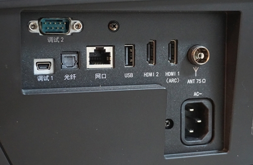 在接口配置方面,中科极光真激光家庭影院X1A应该是我们所见过的所有激光电视产品中接口配置最为丰富的产品之一,其中后置了双HDMI(其中一组带信号回传功能)、一个USB接口、加上机身侧面的USB接口即总共配置了两组USB接口,一个ANT信号接口(激光电视标准中规定的必备接口)、LAN有线网口、光纤接口、两组调试接口,丰富的接口配置可以满足多设备的连接信号切换,可以做到无须插拔线缆切换信号。