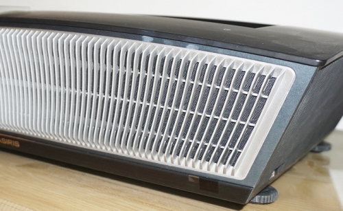 在脚垫方面,以往我们见到的激光电视产品基本都是两点支撑两点可调节式的脚垫,在使用过程中、尤其是画面的调试阶段会非常麻烦,而中科极光真激光家庭影院X1A则非常人性化的设置了四个可调节高低的脚垫,通过底部螺旋支教可以随意对四个角度的高低进行微调,再调整画面时会更加方便快捷。机器前脸的网状栅格内部采用了细密的防尘设置,能有效的阻隔外部灰尘的进入,以保障机器内部的清洁,让机器长期处于良好的环境中稳定的工作。