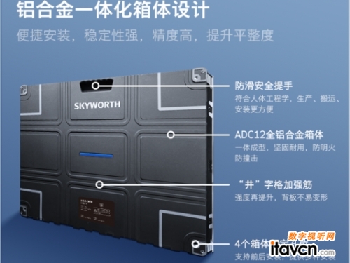 平整外观:“天穹”系列全部采用ADC12铝合金材料,通过压铸铝箱设计,定位柱+定位孔、快速锁等硬件结构,实现高强度,高平整度要求,整机物理拼缝误差控制在0.1MM,相对比传统的模组+框架结构总装误差0.5mm的标准,提升很大。同时整体性、平整度更高。