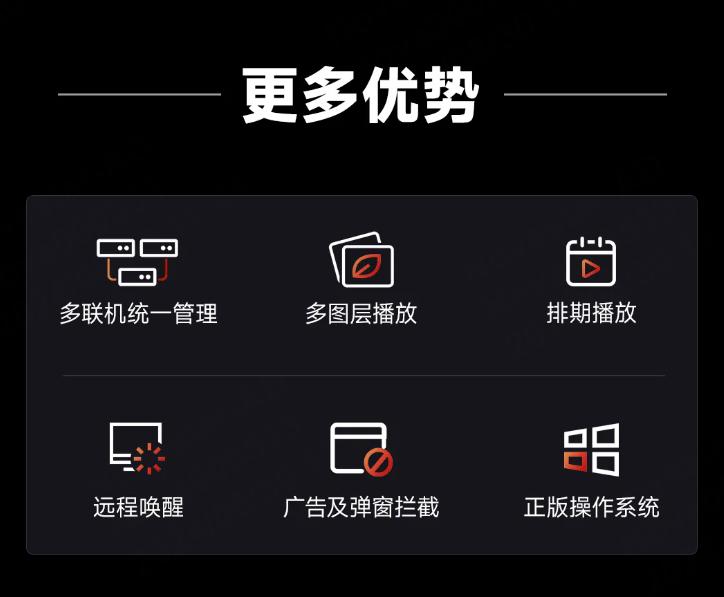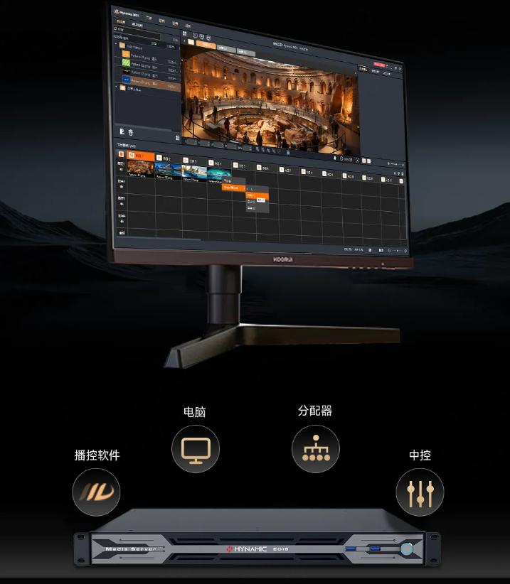 集成显示屏专业播控软件、播控电脑、中控、分配器等强大功能为一体,化繁为简,有效解决接口兼容性、控制复杂等问题,轻松驾驭显示屏播控。