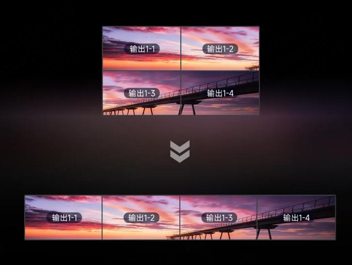 输出口拆分重组,轻松解决接口超长分辨率输出问题,最大可拆分为1024区域,让长条屏显示更加灵活自由。