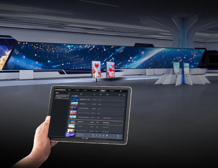 灵石可视化平台远程编播管理,打破距离限制,可通过PAD对大屏画面一键远程切换编辑,极大提升播控便捷性。