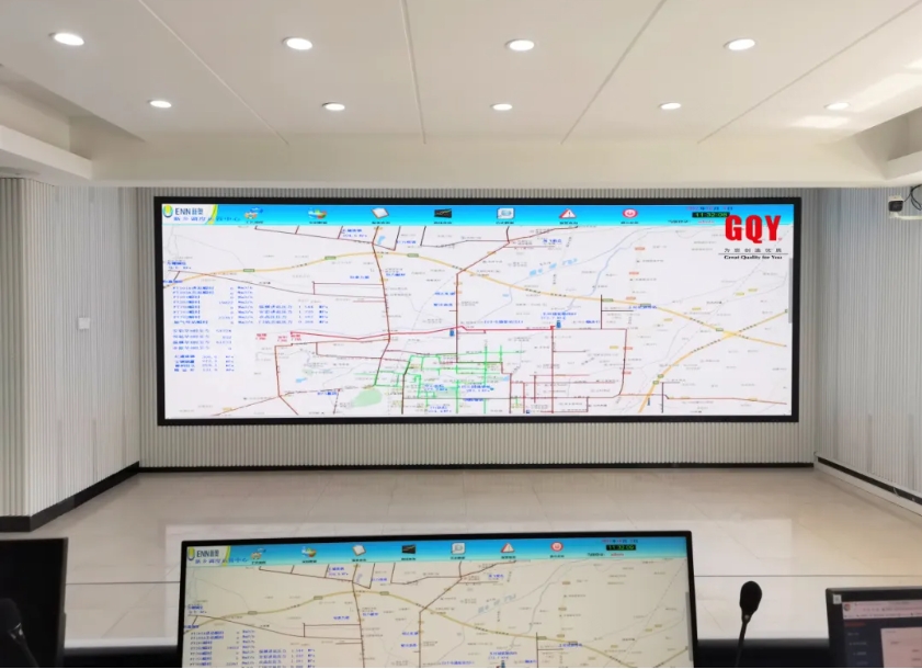 燃气监控中心的应用场景对显示设备有着较高的标准和要求,采用GQY视讯全倒装COB超高清LED大屏,性能稳定可靠,不仅具有防尘、防水、防撞击等产品优势,更有高清画质、万级对比度及HDR显示超广色域等性能优势。运营中心实现了“汇聚数据+综合管理”的实时动态监测系统功能,在高清LED大屏实时呈现业务全景图,全方位实现监管燃气运行状态、流量情况、设备情况等数据,做到“一屏尽显”多维度数据分析,帮助燃气公司做好智能化管控,真正实现所有风险“看得见”。
