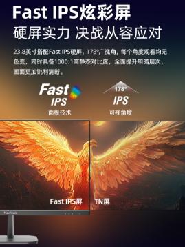 23.8英寸的优派VX24G10,搭配Fast IPS炫彩硬屏,178°广视角,每个角度观看均无色变,同时具备1920x1080 FHD全高清分辨率和1000:1高静态对比度,全面提升明暗层次,画面更加锐利清晰。