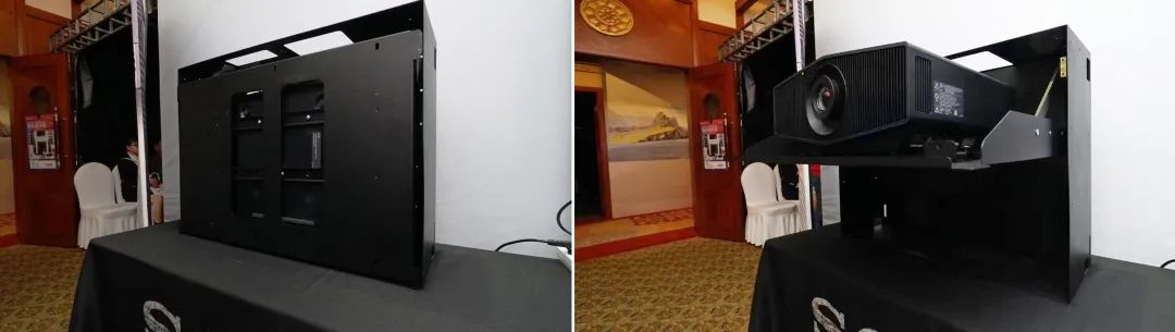 作为索尼和万律新推出的客厅一体化方案——投影机智能化翻转机构引起了现场观众的关注,大家纷纷驻足,研究起这个新装置。整套方案自带收纳组件,实现投影机和音响的隐藏式安装,并可通过索尼投影机遥控器一键开关,特别适合追求简洁美观的消费者,其使用场景是专业影音室、客厅和卧室场景。