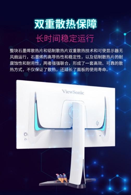 优派XG273-4K-OLED利用双重散热技术确保显示器长时间稳定运行,这源于采用具有高导热性与稳定性的的石墨烯散热片和具有耐腐蚀性与耐用性的铝制散热片,两者强强联合帮助显示器形成了一套高效可靠的散热方式,不仅保证了散热,还延长了面板的使用寿命。