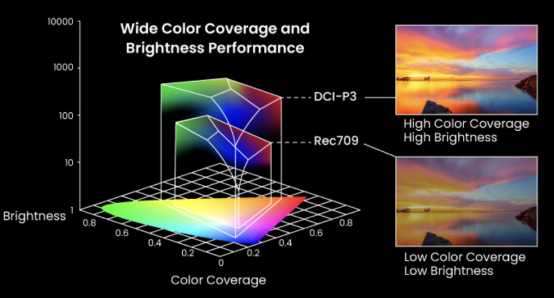 除了动态逐帧映射,HDR内容还原的另一基础是数字影院标准色域的完整覆盖,以及色彩的精准呈现。市场上大多数HDR投影机往往受限于色域覆盖率不足,在呈现HDR画面时容易出现褪色或发灰问题。明基两款新品W4100i、W6050均采用100% DCI-P3色域的显示方案,配合动态逐帧映射技术,充分释放出HDR影像的视觉张力,不但能够准确还原出从翠绿丛林到湛蓝海洋的广袤色彩,也让画面的高光、暗部细节与色彩活力得以全面展现。