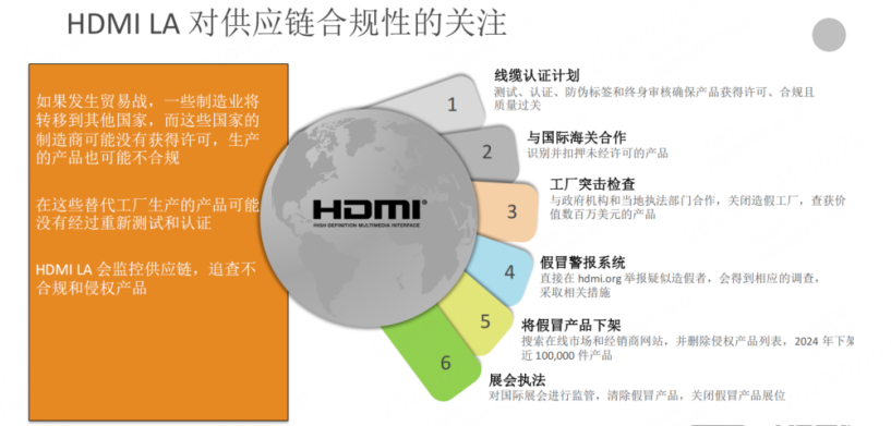 面对全球供应链迁移可能带来的侵权风险,HDMI许可管理公司亚太区授权合规部总监刘锡希展示了强硬的品牌保护策略,构筑起一道严密防线: