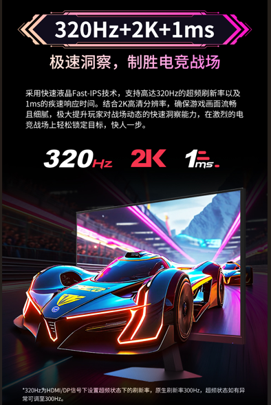 在电竞比赛中,每一帧的延迟都可能影响胜负。VX25G26-2K-3采用Fast IPS电竞面板,支持320Hz超频刷新率,相比传统240Hz显示器,画面流畅度大幅提升,有效减少拖影和卡顿,确保玩家在FPS、MOBA等高速竞技游戏中获得更精准的操作反馈。