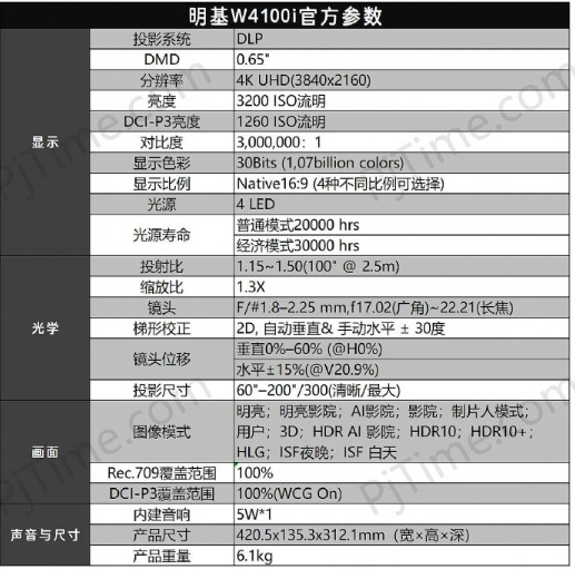 明基W4100i作为W4000的升级款,在性能上还是实打实的提升了不少,从原来的3000ISO流明到现在的3200ISO,并且DCI-P3模式下亮度不减,也因此升级了5%到了1260流明,色彩上的精度从原来的Delta E<3到追求到了<2的地步,通过独家CinematicColor 技术与出厂逐台校准的色准报告,确保每一台设备都能精准呈现好莱坞电影的原生色彩。更重要的是新增的动态逐帧映射功能(dynamic tone mapping)支撑了真正的4K HDR体验。同时搭载0.65英寸大尺寸DMD芯片基本符合了旗舰机型该具备的所有需求。当多数家用投影还在追求亮度参数时,W4100i早将焦点回归到“电影还原”这件看似简单却要求很高的事上,让“还原导演创作意图”不再是一句空谈。