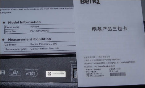明基W4100i影院投影机在出厂之前每一台机器都经过专业画质工程师的精心调校,每一台机器都会附上调校报告,色彩调校报告、机器、三包卡三码合一,实现了真正的“色彩”校准追溯。