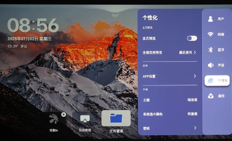 智能层面,明基W4100i在基于安卓开源系统的基础之上进行二次开发,让整个主界面保持干净整洁,同时在系统内海嵌入了华数TV影视资源。