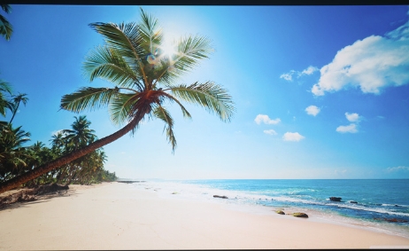 在明暗对比强烈的海滨风景画面上,明基W4100i呈现的海滨风光尽显卓越画质。蓝天的澄澈、海水的碧蓝过渡自然,棕榈树的翠绿层次丰富,沙滩纹理清晰。色彩还原精准,光影细腻,将海滨的清新与明媚完美的投射到硬幕上,能让体验者有种亲临海滩的视觉冲击。