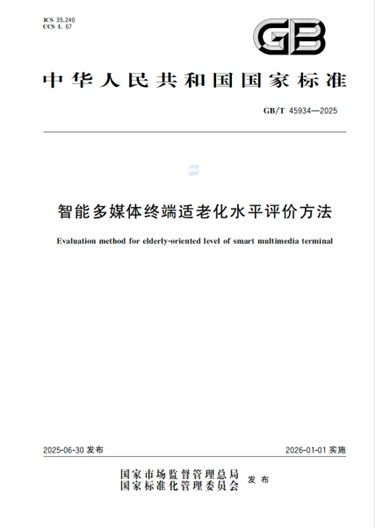 【数字视听网讯】近期,市场监管总局(国家标准委)批准发布一批重要国家标准,其中由视源股份参与制定的 《智能多媒体终端适老化技术要求》(GB/T 45919-2025)、《智能多媒体终端适老化水平评价方法》(GB/T 45934-2025)及 《声系统设备 第21部分:基于输出的声学测量》(GB/T 12060.21-2025) 三项国家标准正式亮相,将于2026年1月1日起实施。
