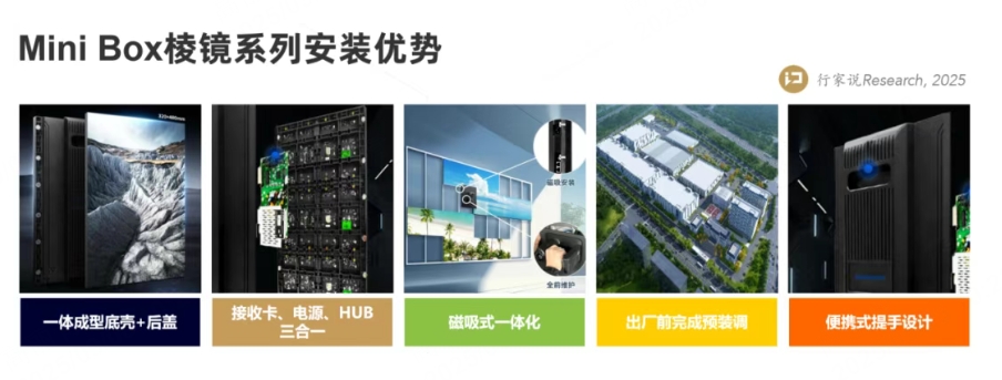 近年来,海外市场正成为LED显示行业增长的关键驱动力,国内企业国际化进程持续加速。据行家说Research年中『LED显示产业年中回顾与趋势洞察』调研显示,2025年,约70%的企业明确看好海外市场潜力,市场增长重心向海外转移趋势明显。在这背景下,不同国家和地区的电网标准、环境条件等方面的差异,成为企业出海的主要挑战。Mini Box棱镜系列从设计源头切入,致力于化解全球化部署中的主要障碍,为企业提供高度适配的解决方案。