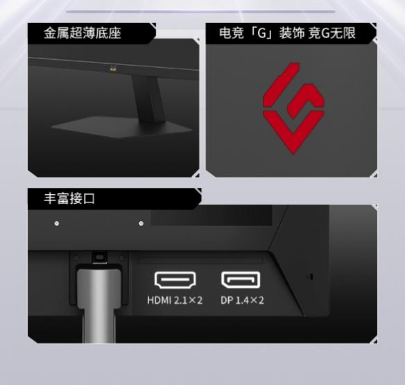 产品还支持VESA壁挂安装,适配多种桌面布局与电竞空间构建需求。整体设计不止提升视觉冲击力,也兼顾人体工学与空间灵活性。
